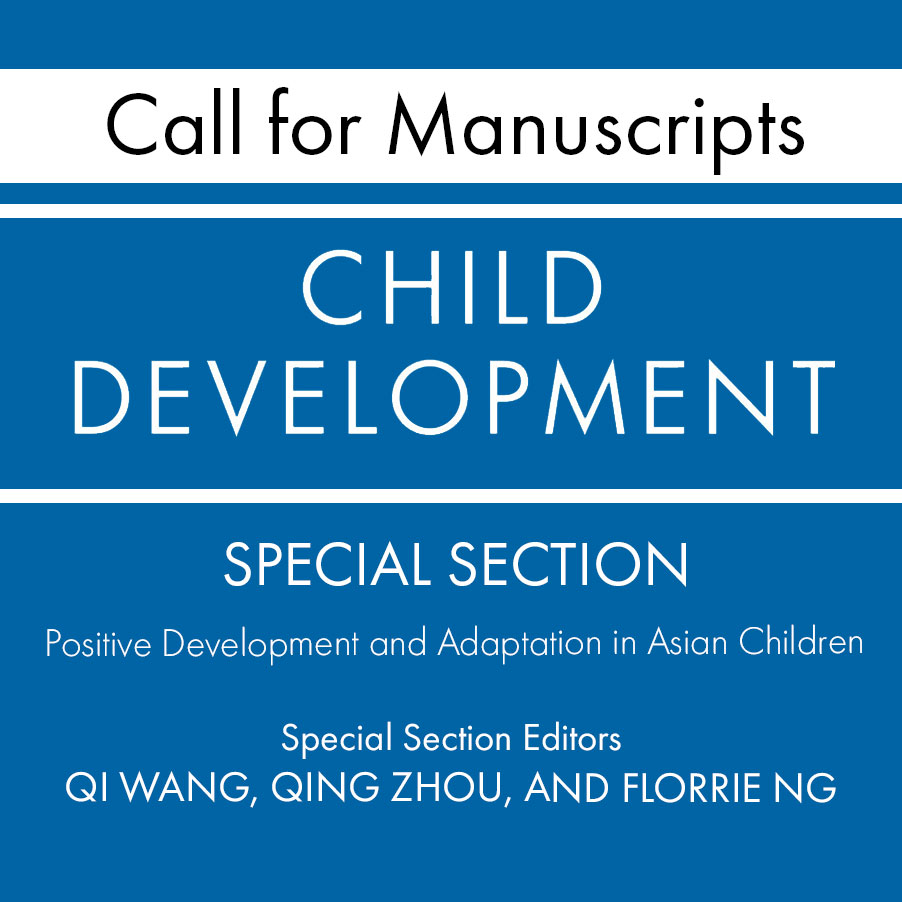 Child Development invites manuscripts from the international research community for a Special Section on Positive Development and Adaptation in Asian Children. Submissions are due Monday, January 15, 2024.